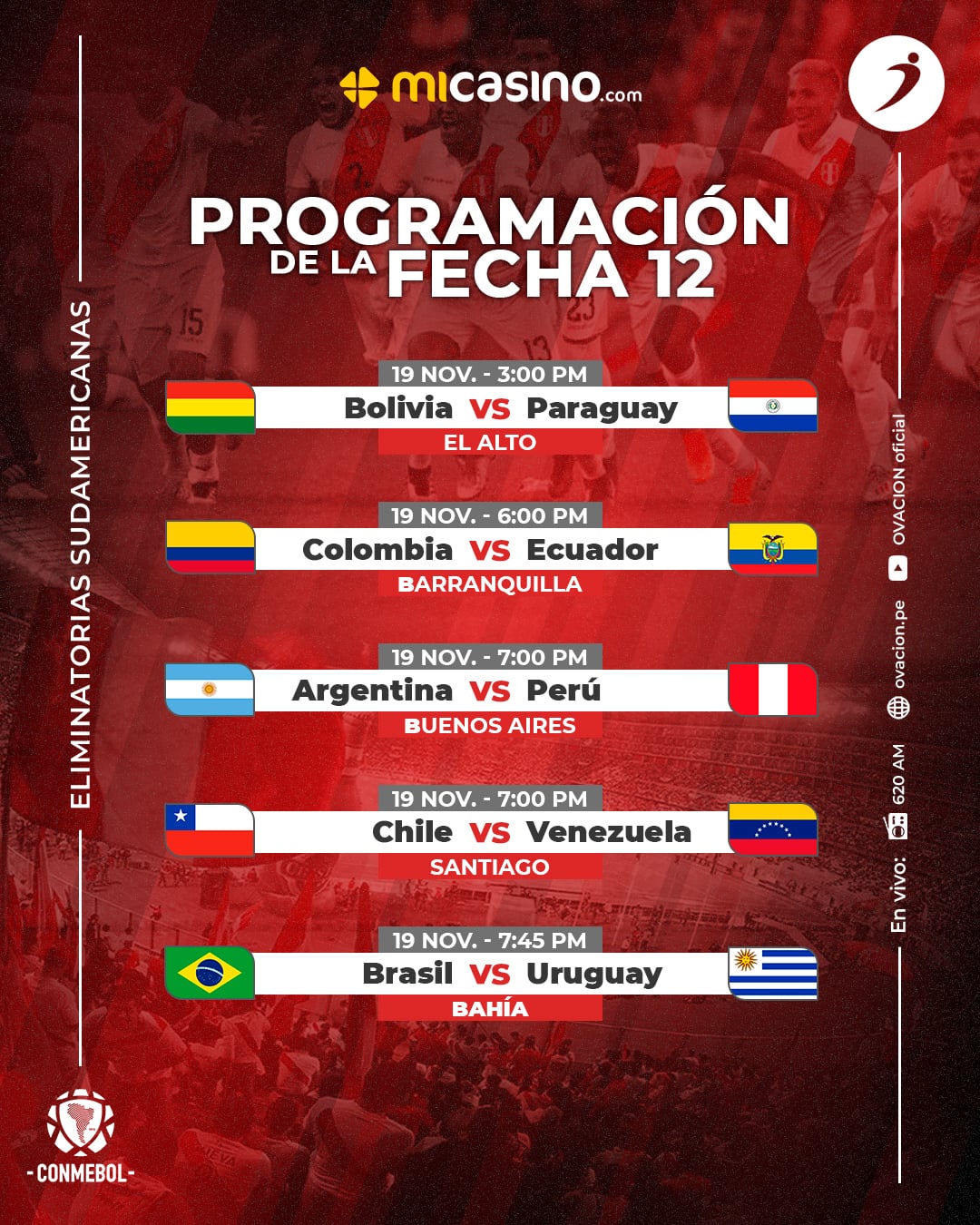 ¡ASÍ SE JUGARÁ LA FECHA 12 DE LAS ELIMINATORIAS!
